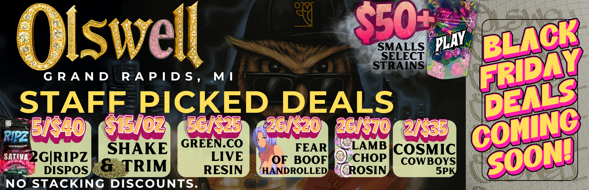 - Vapes & Carts: A full lineup of strain-specific live resin and smooth distillate options
